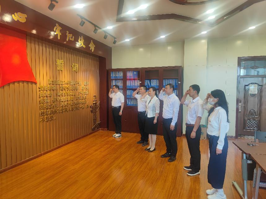 会上,“我志愿加入中国共产党,拥护党的纲领,遵守党的章程,履行党员义务……”在现代教育技术中心党支部副书记贺子彧的领誓下,慷慨激昂的入党誓词回响在活动现场,句句铿锵的誓言让全体党员干部坚守心如磐石的初心,坚定一心向党的决心,坚持奋发有为的信心。