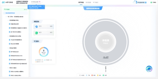 知识图谱模式学习:通过知识图谱,学生可以从任一知识点开始学习,并查看自己对每个知识点的掌握程度,系统会用颜色区分(红色模糊、蓝色了解、灰色未学)。