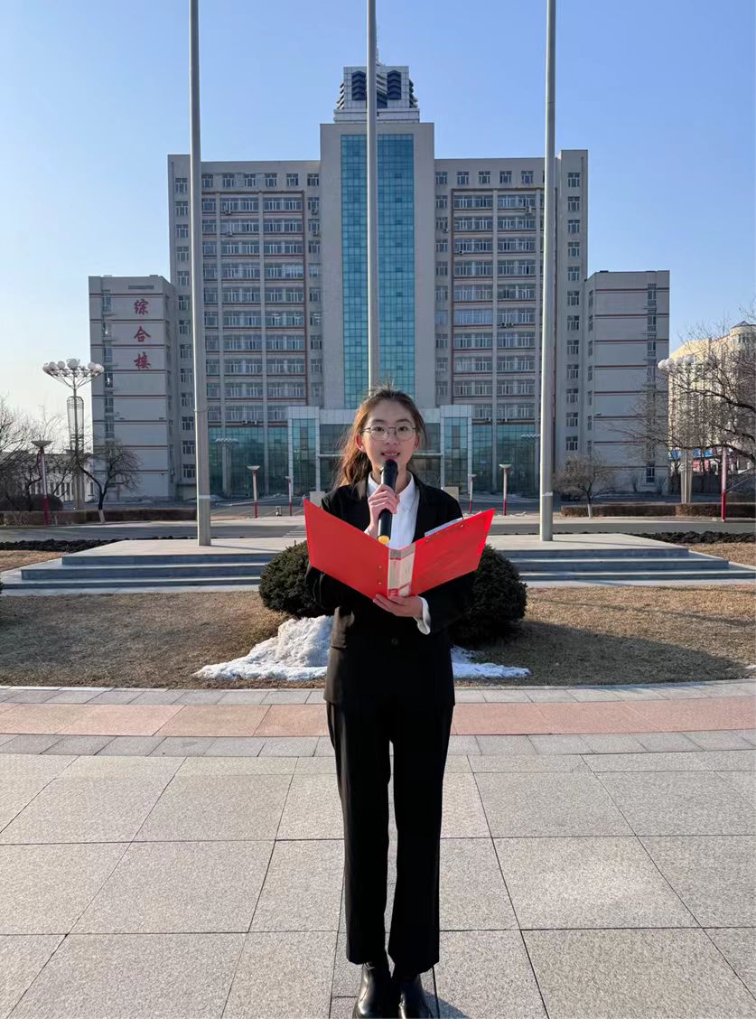 接下来,数学科学学院2023级杨泽鑫、张佳宏、程嘉仪、李思烨同学带来诗朗诵,表达出作为新时代青年应永远铭记先辈历史,永远传承革命精神。2023级学生代表黄雨欣同学进行国旗下的发言,黄雨欣同学表示青年是中华民族的希望和未来,肩负着民族振兴国家富强的重任,要像英烈们一样去奋斗、去搏击,不断拓宽属于我们新时代青年的人间正道。