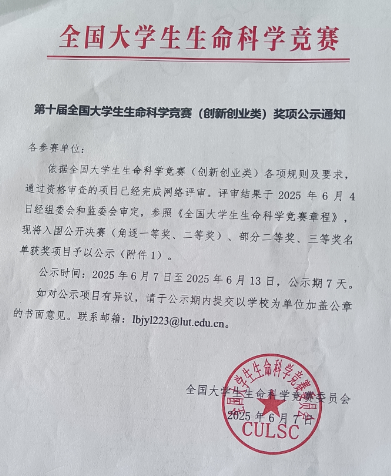 该赛事由全国大学生生命科学竞赛委员会主办,是生命科学领域最具影响力的全国性学科竞赛之一,吸引了全国众多顶尖高校学子参与角逐。此次获奖项目聚焦生命科学前沿领域,展现了鲜明的创新思维与应用潜力。