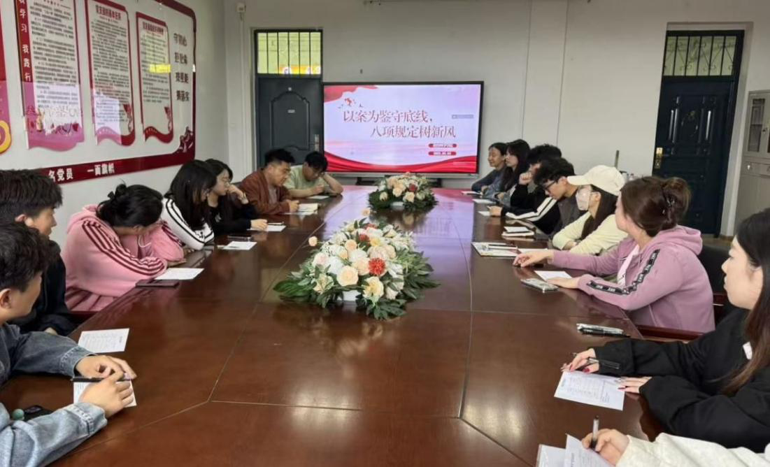 为深入贯彻中央八项规定精神学习教育,筑牢学生党员纪律意识和规矩意识,学院团总支副书记梁君于6月4日13:30在文科楼A222组织学生党员开展“以案为鉴守底线,八项规定树新风”主题党日活动。