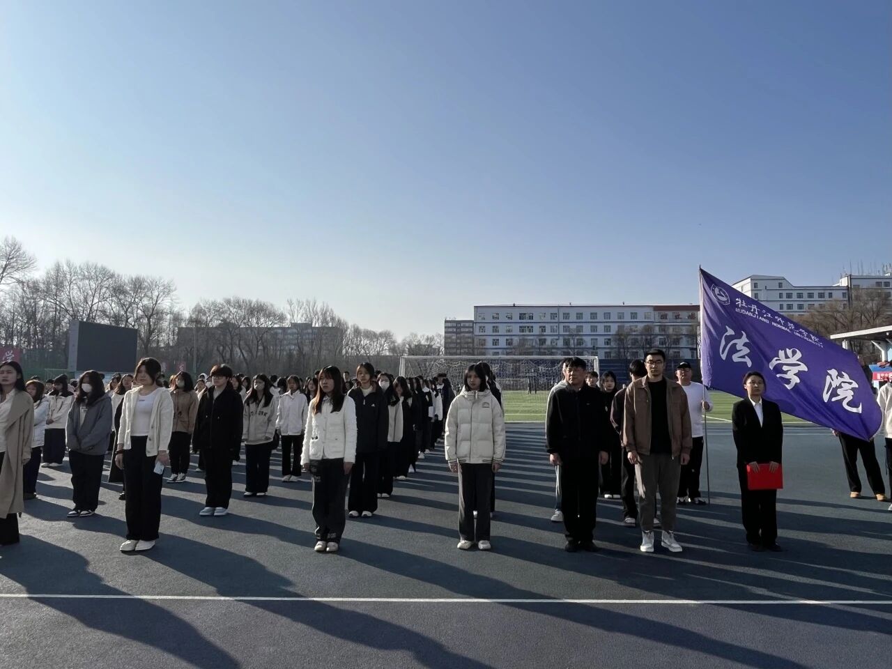2025年4月7日是第76个世界卫生日。为帮助学生养成良好的生活习惯,让卫生和健康理念深植心间,弘扬文明健康、绿色环保精神,由团委主办、法学院承办的 “健康起点 希望未来” 主题升旗仪式在第一田径场举行。法学院党委副书记孙成、辅导员李泓博出席活动,法学院2024级全体同学参加。升旗仪式由法学院团总支副书记周欣然主持。