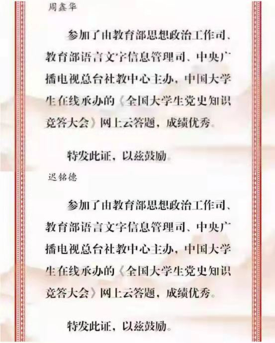 2021年暑期,14名学生深入东北抗日联军第四军遗址、大庆铁人纪念馆、八女投江博物馆等场所开展红色教育。积极参加由辽沈战役纪念馆主办的“感受辽沈战役,传承革命精神”——中国高校党史知识问答大会,迟铭德等七名学生在省级复赛中分别获得一、二、三等奖和“优秀志愿者”称号。