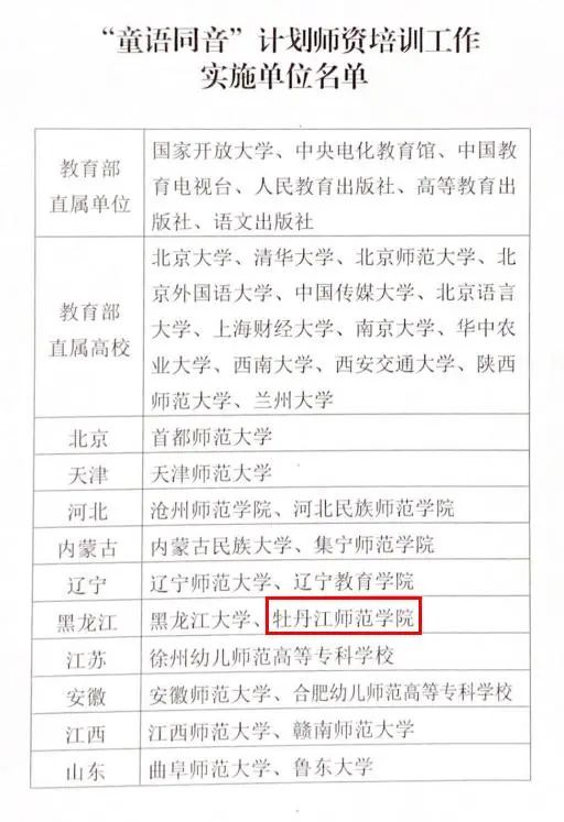 据悉,该项目根据《教育部语用司关于开展民族地区、农村地区幼儿园教师国家通用语言文字应用能力培训实施单位推荐遴选工作的通知》的工作安排,由我校省乡村教师教育发展学院牵头,文学院、普通话测试站等协同组织论证,经省级教育行政部门推荐申报。全国共有70家单位参与申报,经专家评审,遴选出56家单位作为中央专项彩票公益金童语同音计划——幼儿普通话教育项目的师资培训工作实施单位。黑龙江省只有我校与黑龙江大学入选。