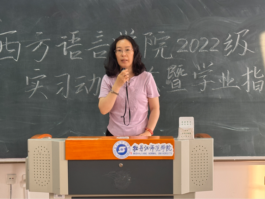 2025年6月29日,西方语言学院在综合楼826室召开2022级实习动员大会暨学业指导大会。教学实践部主任郭霞、英语教研室主任于一鸣、法语教研室主任柴冒臣及辅导员王泽宇出席本次会议,2022级全体学生参与此次会议。