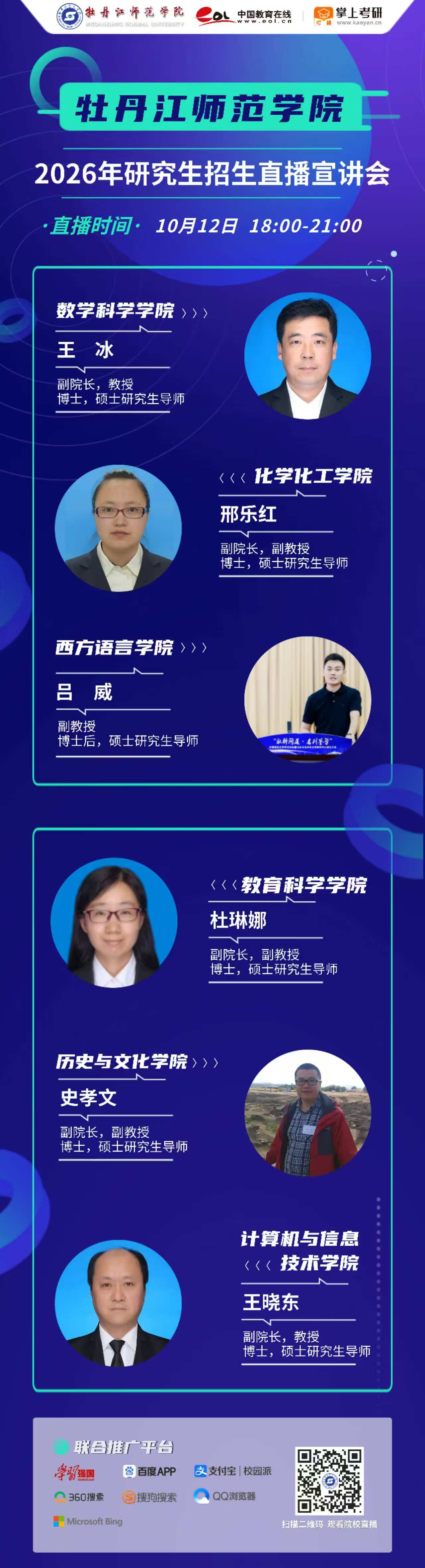 为更好帮助广大考生了解我校2026年硕士研究生招生政策,我校各招生学院将于2025年10月11日至13日,每晚18时开启线上直播宣讲。