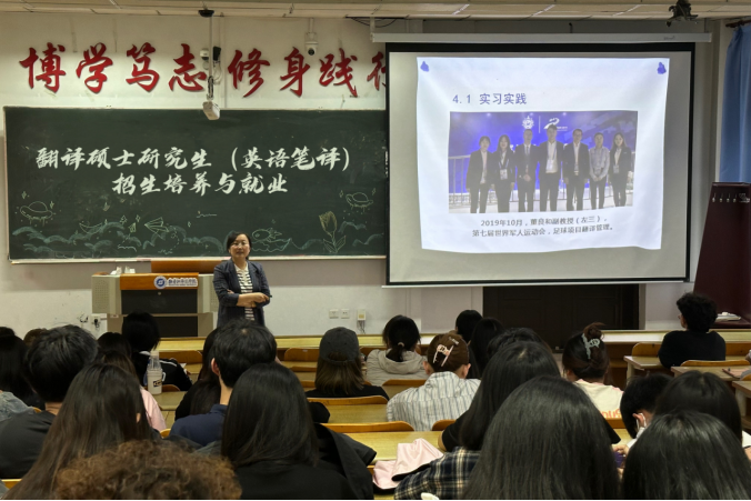 2024年6月6日,应用英语学院副院长、副教授,硕士研究生导师,英国威斯敏斯特大学访问学者,澳大利亚研究中心成员孙海一为我院学生做了题为“翻译硕士研究生(英语笔译)招生、培养与就业”的讲座,共计100余人现场聆听讲座。